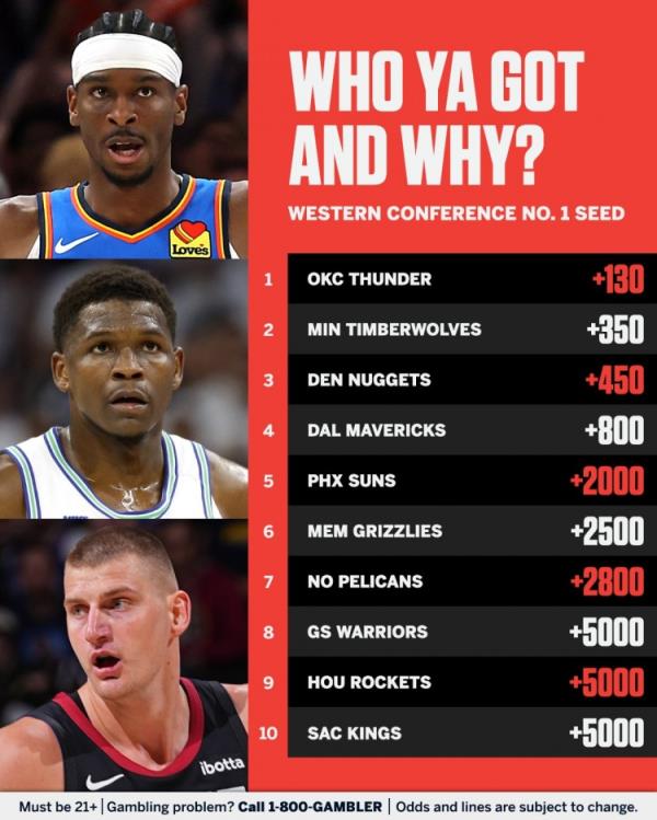 8月18日讯 今天,ESPN晒出了新赛季西部榜首球队的赔率,具体如下: