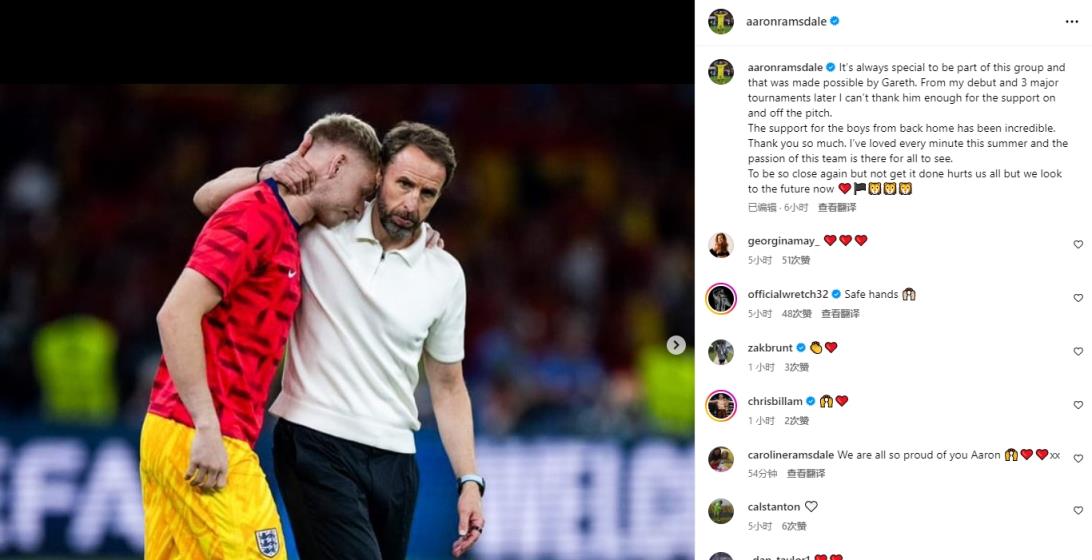 7月17日讯 此前,索斯盖特宣布辞去英格兰男足主帅的职位。拉姆斯代尔更新社媒,致敬了索斯盖特,谈到了欧洲杯失利。